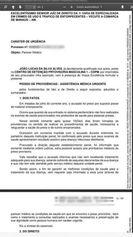 A defesa argumenta que, após quase 10 dias de sua prisão, ainda não haviam sido realizados exames de saúde necessários para garantir a integridade física de Picolé. Segundo informações obtidas com exclusividade pelo Portal e TV CM7 Brasil, Lucas Picolé teria revelado durante uma entrevista no parlatório da instituição penal que seus exames de saúde resultaram positivos para uma doença.