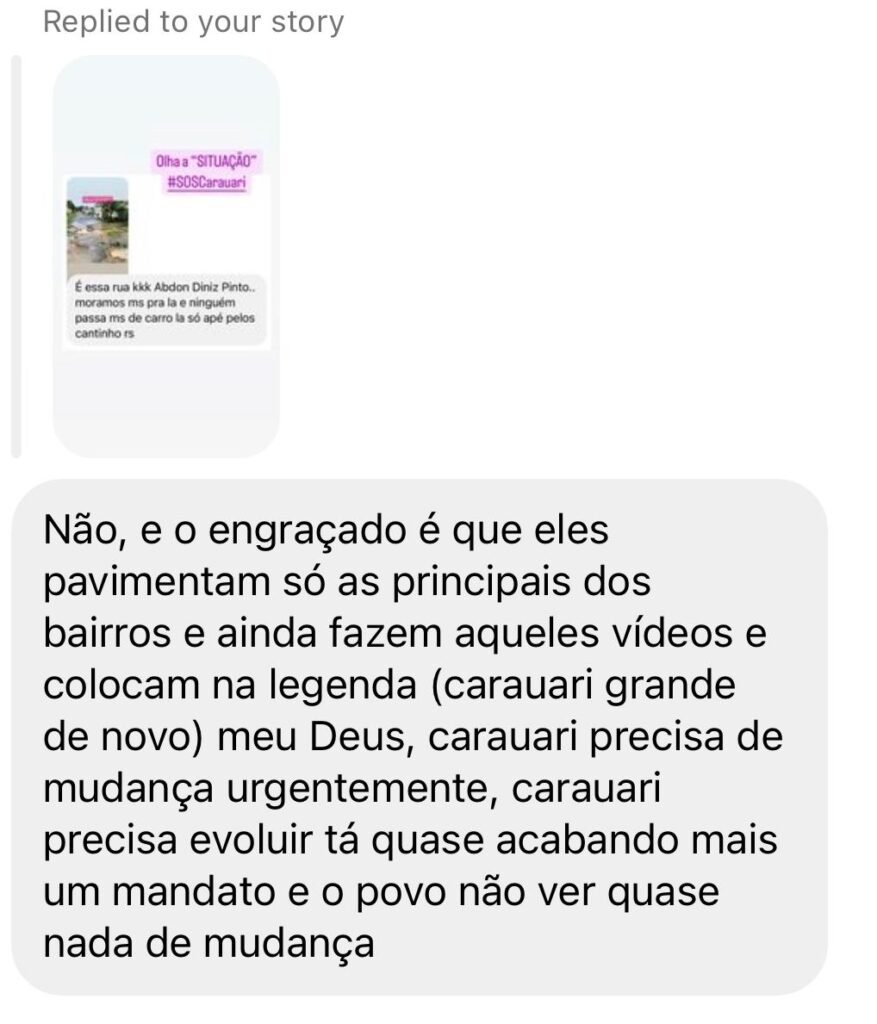 Até o momento, a administração municipal não respondeu oficialmente às preocupações e denúncias dos moradores. O incidente com o carro e a crescente indignação pública, no entanto, podem forçar uma resposta e, com sorte, ações que beneficiam a todos em Carauari.